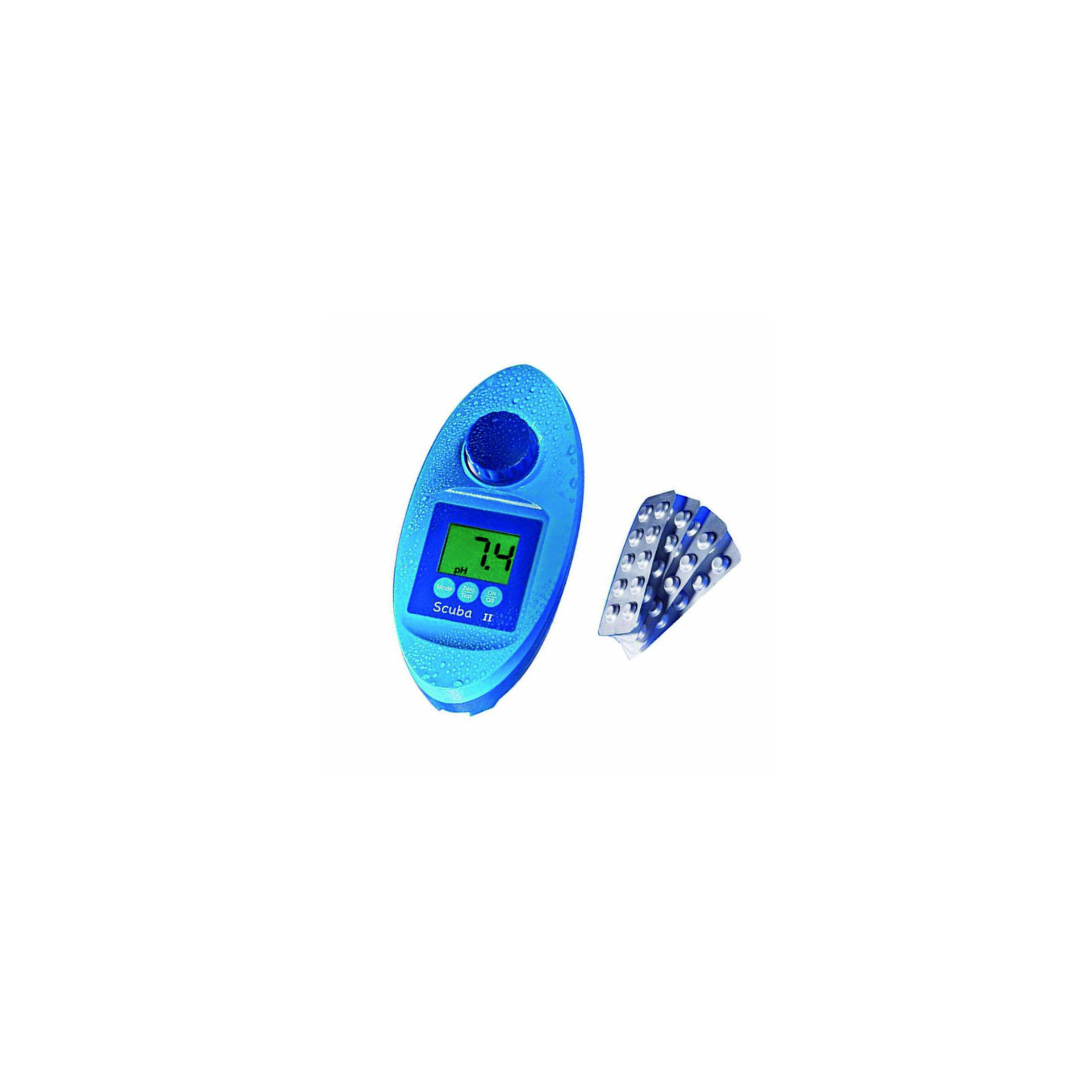 El fotómetro SCUBA II es un dispositivo avanzado para medir la calidad del agua, que evalúa cinco parámetros clave: cloro libre, cloro total, pH, ácido cianúrico y alcalinidad total. Con un diseño fácil de usar y una pantalla LCD clara, este fotómetro es resistente al agua y al polvo, gracias a su grado de protección IP-68. Sus mediciones precisas incluyen cloro (0,1 a 6 ppm), pH (6,5 a 8,4), ácido cianúrico (1 a 160 ppm) y alcalinidad (0 a 300 ppm). Funciona con dos pilas AAA, se apaga automáticamente tras cinco minutos de inactividad y es compatible con reactivos Lovibond, siendo ideal para el mantenimiento de piscinas y spas en entornos de 5 a 40°C y 30 a 90% de humedad.